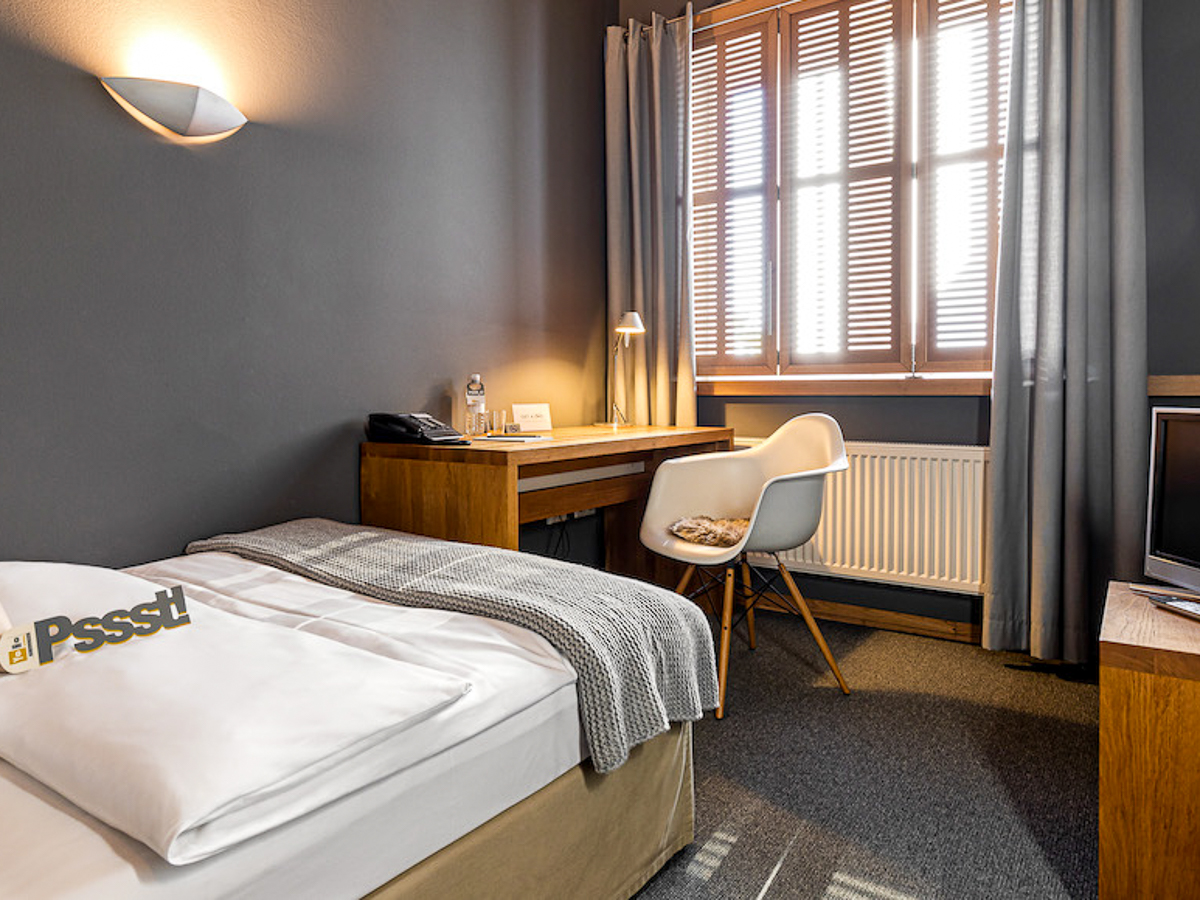 Ob Sie allein oder zu zweit anreisen, in den Räumen – auf 3 Etagen verteilt – finden Sie je nach gebuchter Kategorie ein bzw. zwei Einzelbetten oder ein Doppelbett, sowie Schreibtisch, Kabelfernsehen und ein Duschbad mit Fön. Alle Zimmer durch einen Fahrstuhl erreichbar.